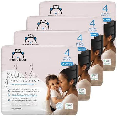 Amazon Brand – Mama Bear Plush Protection Diapers – Size 4, One Month Supply,