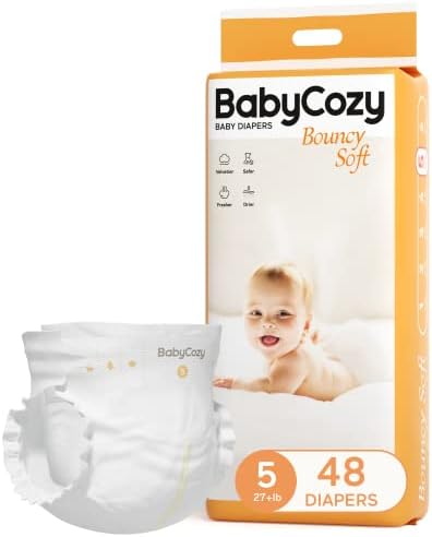 Baby Diapers Size 5 (27+lb),48 Count Babycozy Dry Disposable Diapers Bouncy Soft