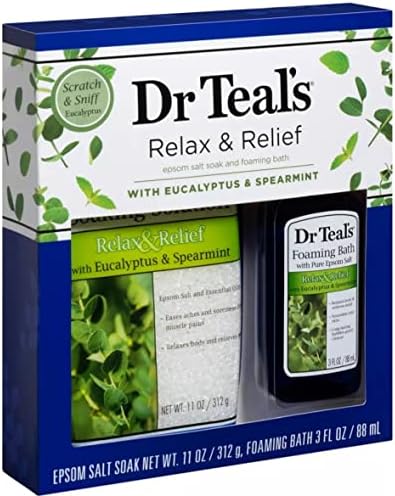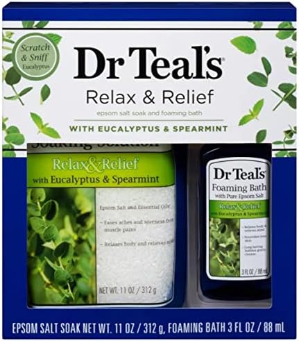 Great for gifting! Give the gift of rejuvenation and self care with this Dr Teal’s sampler set featuring Eucalyptus and Spearmint essential oils to restore the body and stimulate the senses. Features Dr Teal’s Pure Epsom Salt (Magnesium Sulfate USP) with essential oils to sooth your body and relax your mind helps revitalize tired achy muscles. Dr Teal’s Eucalyptus and Spearmint Foaming Bath transforms your bath into a relaxing spa experience that nourishes your skin, while long lasting bubbles gently cleanse. Products intended for external use only. Never tested on animals. Made in the USA