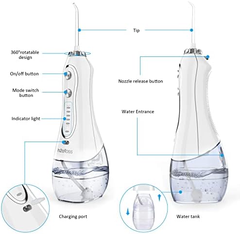 H2ofloss Water Flosser Portable Dental Oral Irrigator with 5 Modes, 6