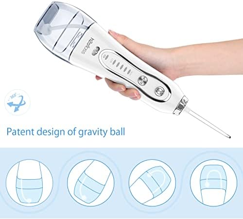 【5WATER PRESSURE 】 Portable dental flosser is upgraded with 5 settings of water pressure(range from 20-110psi).This design allows you customize your own teeth cleaning experience. Another outstanding breakthrough is :The gravity ball added at the end of tube ensure water can come out completely no matter what directions the machine leans when flossing.