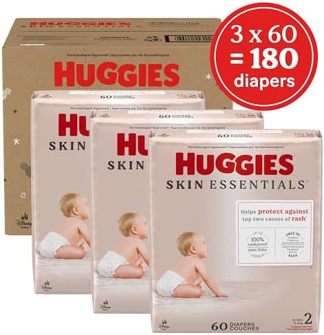 Huggies Size 2 Diapers: 180 Huggies Skin Essentials Baby Diapers (3 Packs of 60), Size 2 (12-18 lbs)