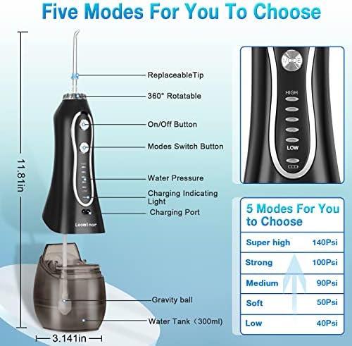 Leominor Oral Irrigator features 5 settings of water pressure from 40-130PSI and a low noise design(less than 55db) to meet a variety of oral care needs. Innovative memory feature allows you to continue using your favorite mode the next time you use it.