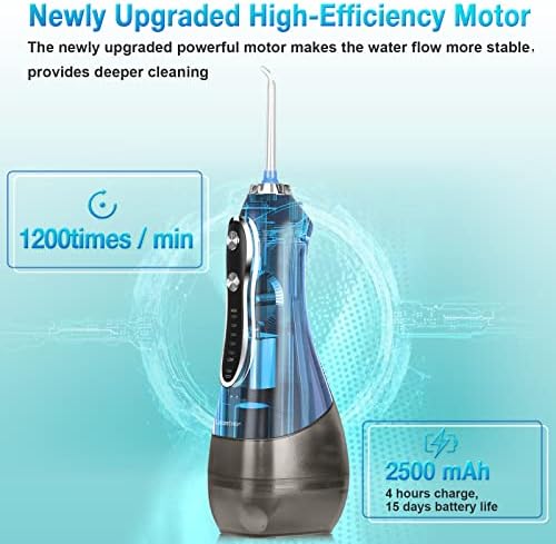 【More Portable & Long Battery Life】 Keep your teeth clean wherever you go. Given its compact size, this oral water flosser will easily fit inside your backpack, handbag, or luggage. 2500mAh long battery life can be used continuously for 15 days after a full charge to satisfy your travel time.