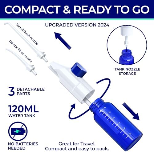 Cleaner Mouth & Fresher Breath: This oral irrigator water flosser effectively removes food debris from between your teeth and braces. The tonsil stone remover nozzle is made to get rid of tonsil stones easily.