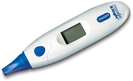 This thermometer uses infrared technology and provides probe-free readings from the ear or forehead in less than 1 second