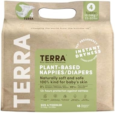 Terra Size 4 Diapers: 85% Plant-Based Diapers, Ultra-Soft & Chemical-Free for