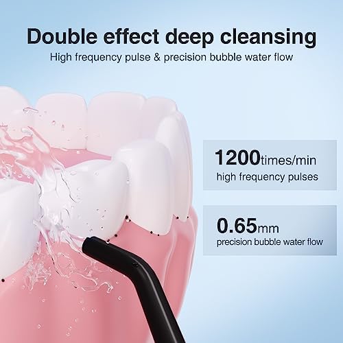 【Double effect deep cleansing】Experience the ultimate in oral cleansing with our Double Effect Deep Cleansing system. Benefit from the powerful combination of high frequency pulses (1200 times/min) and precision bubble water flow (0.65mm). Enjoy a thorough and invigorating deep clean that reaches every corner of your mouth, promoting optimal oral health.