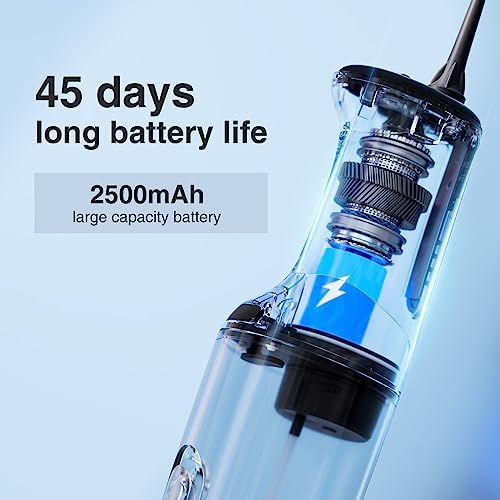 【45 days long battery life】Enjoy the convenience of our water flosser with an impressive 45 days of long battery life. Bid farewell to frequent charging as our device provides extended usage without compromising performance. With this exceptional battery life, you can maintain your oral hygiene effortlessly, whether at home or on the go. Experience uninterrupted oral care and embrace the freedom that comes with a prolonged battery life for your water flosser.